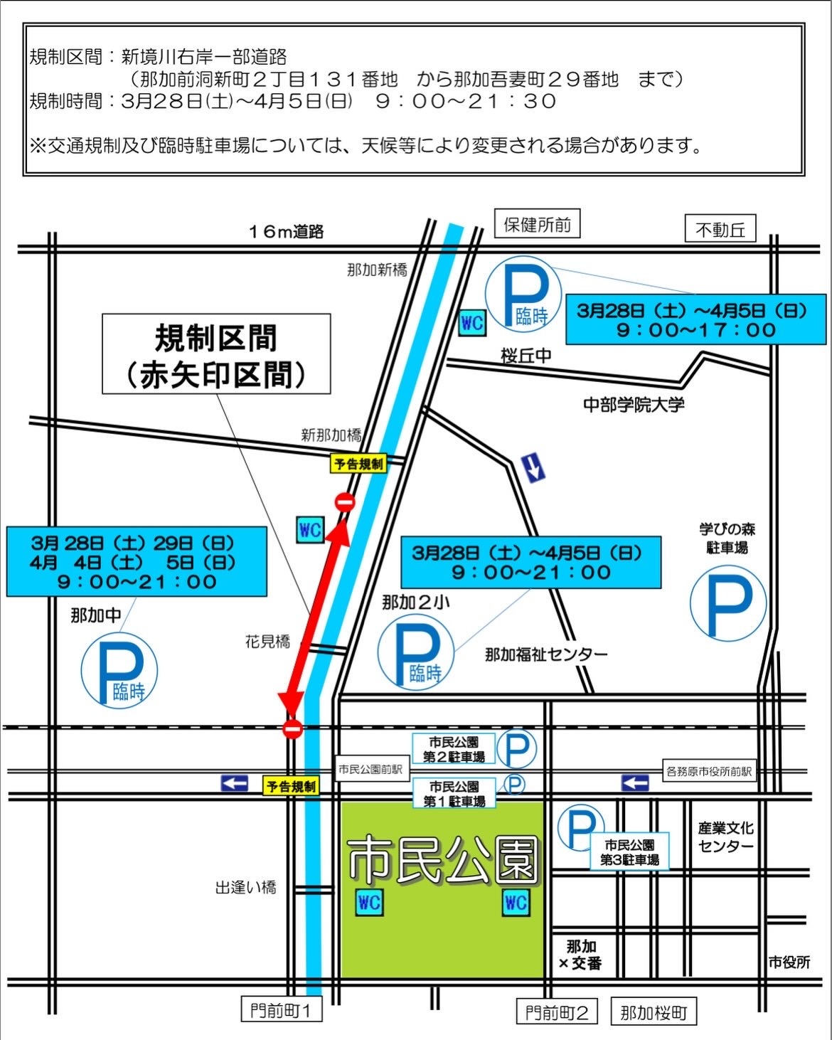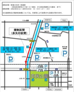 ◎桜まつり期間中は会場周辺が大変混雑しますので、公共交通機関をご利用ください。 - ◎周辺道路の交通規制もあります。